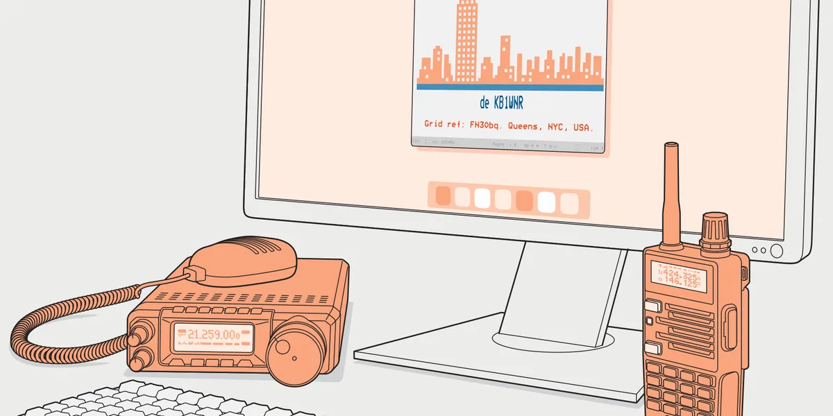 SSTV is an analog method of transmitting pictures, typically including banners with ham-radio call signs and other messages. SSTV is fun, but, true to its name, it’s slow—the most popular protocols take a little under 2 minutes to send an image—and it can be tricky to get a complete picture with legible text. For that reason, SSTV images are often broadcast multiple times.